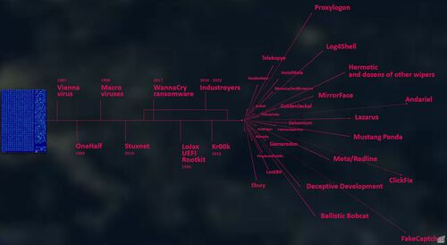 【図表】 ESETが分析した破壊的な影響をもたらすマルウェアや組織の系譜(出典:イーセットジャパン) AIの脅威の第2段階は自律型システムを悪用したサイバー攻撃だという(出典:イーセットジャパン) 検出数が急増している「HTML/FakeCaptcha trojan」(出…