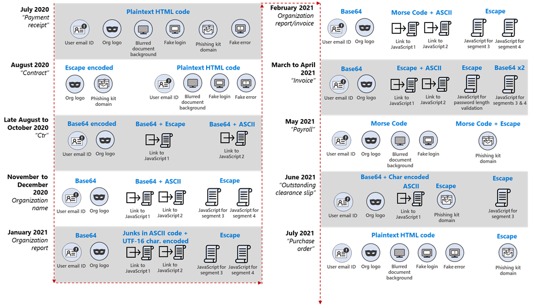 出典: https://www.microsoft.com/security/blog/2021/08/12/attackers-use-morse-code-other-encryption-methods-in-evasive-phishing-campaign/