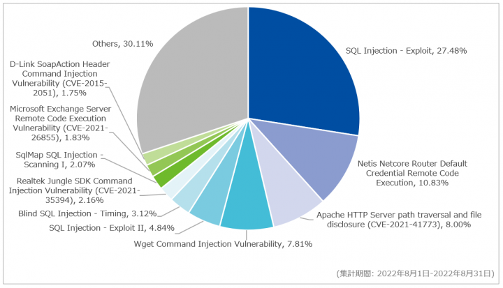 Webアクセス時に検出したマルウェア種別の割合(2022年8月)