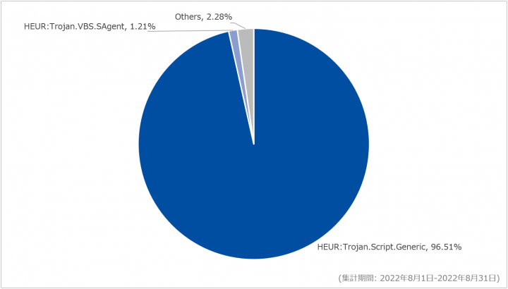 メール受信時に検出したマルウェア種別の割合(2022年8月)