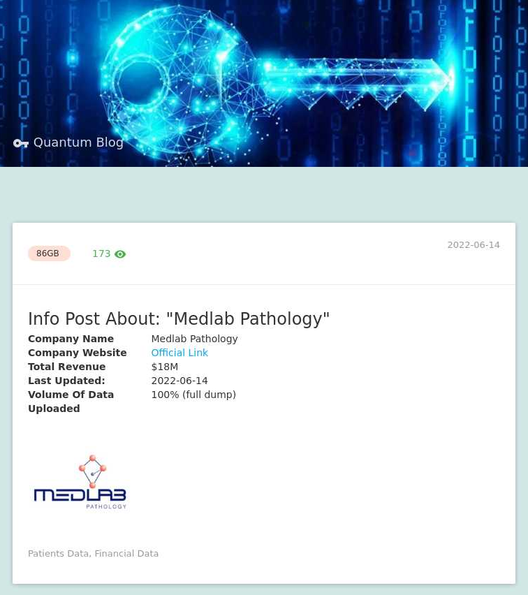QuantumランサムウェアがMedlab Pathologyをリストアップ(KELA)