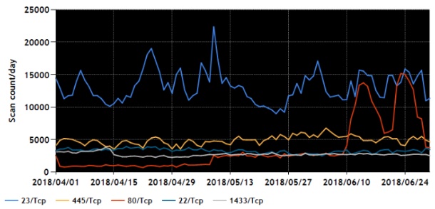 ◆2018年2Q、TCP 80番ポート宛てのパケットが増加 - 「Mirai」影響で (Security NEXT, 2018/08/03)