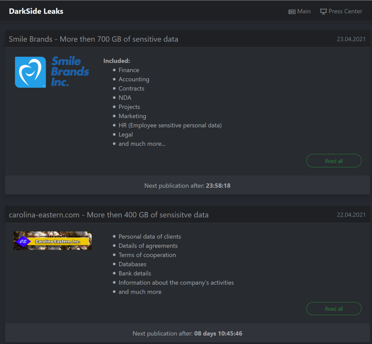 出典: http://darksidc3iux462n6yunevoag52ntvwp6wulaz3zirkmh4cnz6hhj7id.onion/press-center