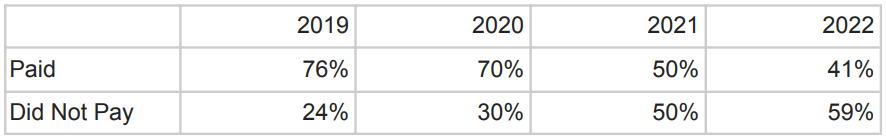 ランサムウェアの支払い割合(コーベウェア社)